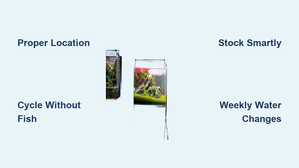 When green algae coats your glass within days, reduce lighting to 6 hours daily and add 2 nerite snails. If fish gasp at the surface, immediately test for ammonia spikes and perform a 50% water change. Cloudy water indicates bacterial bloom—check filter flow rate and avoid overcleaning media. For persistent white spot disease, gradually raise temperature to 82°F while adding aquarium salt at 1 tablespoon per 5 gallons.