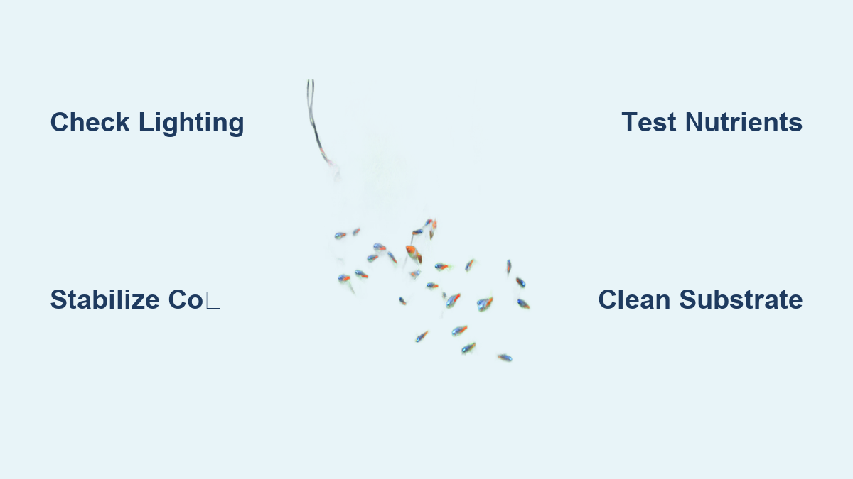Don’t grab fertilizers or adjust lights yet. Jumping to solutions without diagnosis wastes time and money while your plants deteriorate. Browning manifests differently based on the culprit, so become a plant detective first. Check older leaves—if they’re browning while new growth stays green, you’re likely facing a potassium or nitrogen deficiency. But if new shoots turn brown immediately, your CO₂ levels are critically low or your lighting is inadequate. Notice transparent, papery brown patches? That’s classic iron deficiency in sword plants. Meanwhile, brown diatom algae coating leaves indicates silicate overload or new-tank syndrome. Grab a magnifying glass and inspect leaf veins: yellowing between green veins means iron starvation, while brown edges on older leaves point to potassium shortage. This visual diagnosis takes 60 seconds but saves weeks of failed fixes.