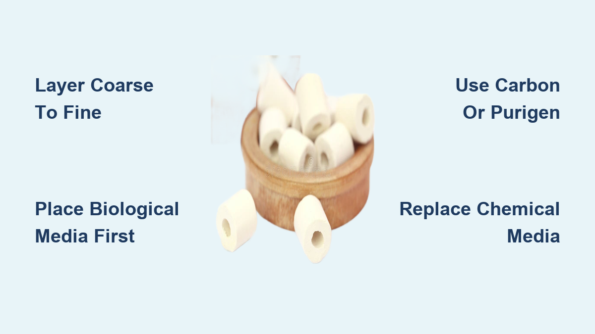 Pro Tip: Place biological media after mechanical stages but before chemical filtration. This ensures water reaches your bacteria colony free of large debris while preserving chemical media effectiveness.