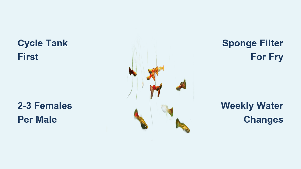 Your guppy aquarium setup is now a self-sustaining ecosystem where vibrant fish thrive for 2-3 years. Stick to weekly water changes, maintain 2-3 females per male, and never skip quarantine for new additions. Within months, you’ll witness fascinating behaviors: males performing courtship dances, fry darting through Java Moss, and natural color variations emerging in successive generations. Remember—the secret to guppy success isn’t expensive gear, but consistency in water quality. Test parameters weekly, keep a maintenance log, and within a year, you’ll be confidently upgrading to advanced setups like planted breeder tanks or CO2-enhanced displays. The true reward? Watching your living rainbow flourish.
