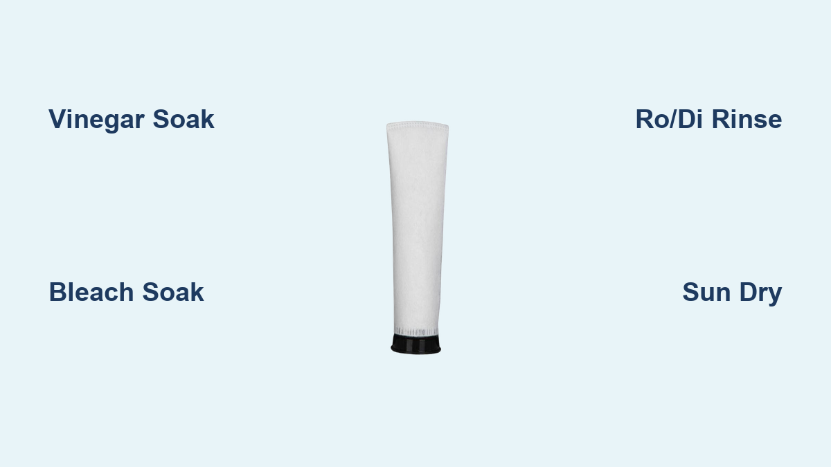 - RO/DI Final Rinse (5 minutes): Soak in RO/DI water for 5 minutes to remove vinegar residue. Hang in sunlight for 2 hours—UV exposure kills remaining bacteria.
