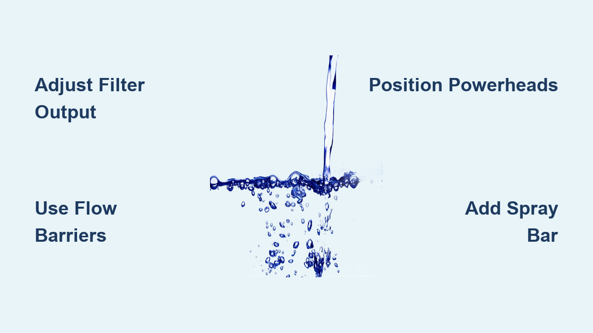 Immediate fix: Cover your filter output with a coarse sponge pre-filter ($3-$5). The sponge breaks the single jet into hundreds of gentle streams while adding mechanical filtration. For canister filters, attach a spray bar ($10-$20) that distributes flow evenly across the tank’s back panel. DIY alternative: drill 1/8″ holes every inch along a length of PVC pipe connected to your filter output.